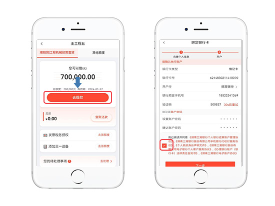 注:①尽量绑定中农工建交常用卡,可登录银行app方便转账;②银行卡预留手机号需和您提交贷款申请时填写的一致