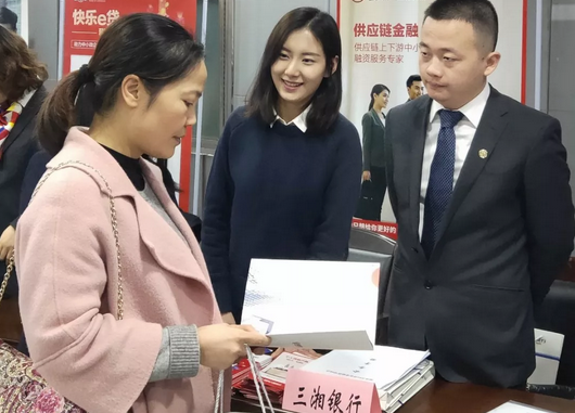 在会场外的布展宣传处,一场融资需求与金融产品的碰撞正在发生。“你们这个供应链金融是怎么做的?我们是一家供应商,给军工企业供应原材料。”“我们是一家民营医院,你们可以提供什么样的产品给我们吗?……”“我们三湘银行作为中部地区首家民营银行,跟你们一样是民营企业,有着反哺民营企业的天然基因,为湘商、民营和小微企业服务是我们的天然职责。”