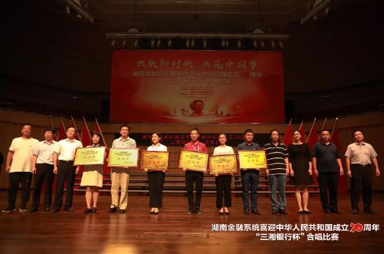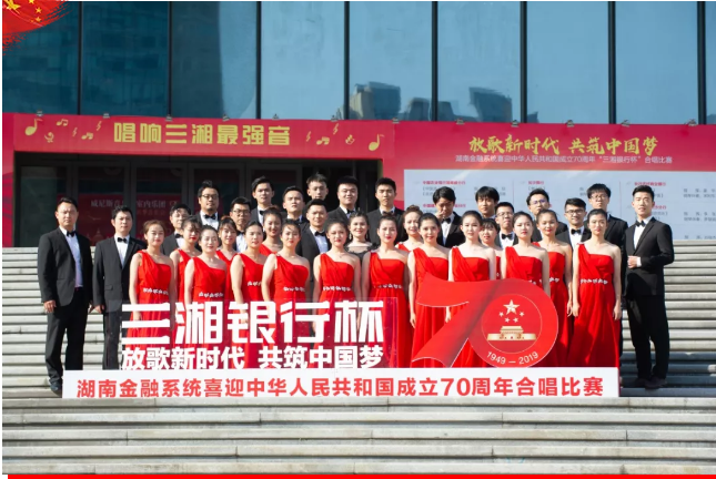 人民共和国70周年“三湘银行杯”合唱比赛在长沙音乐厅隆重举行,三湘银行荣获最佳组织奖和优秀奖。湖南金融系统共13家金融机构,680余名演职人员组队参赛,同台放声高歌,唱响了湖南金融人对党和祖国的无限热爱。