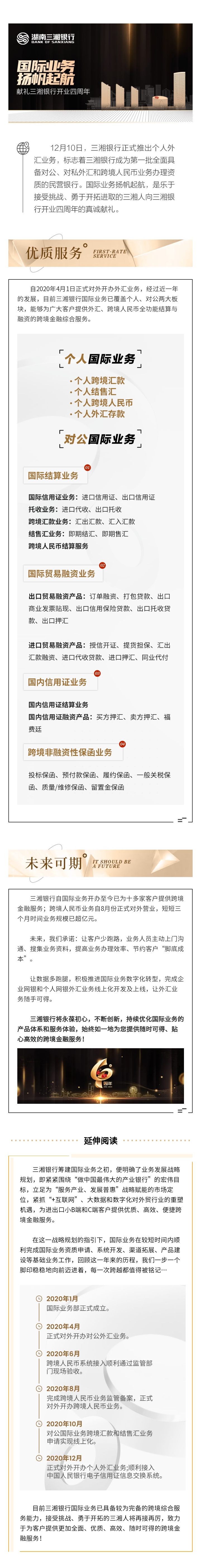 国际业务扬帆起航,献礼三湘银行开业四周年