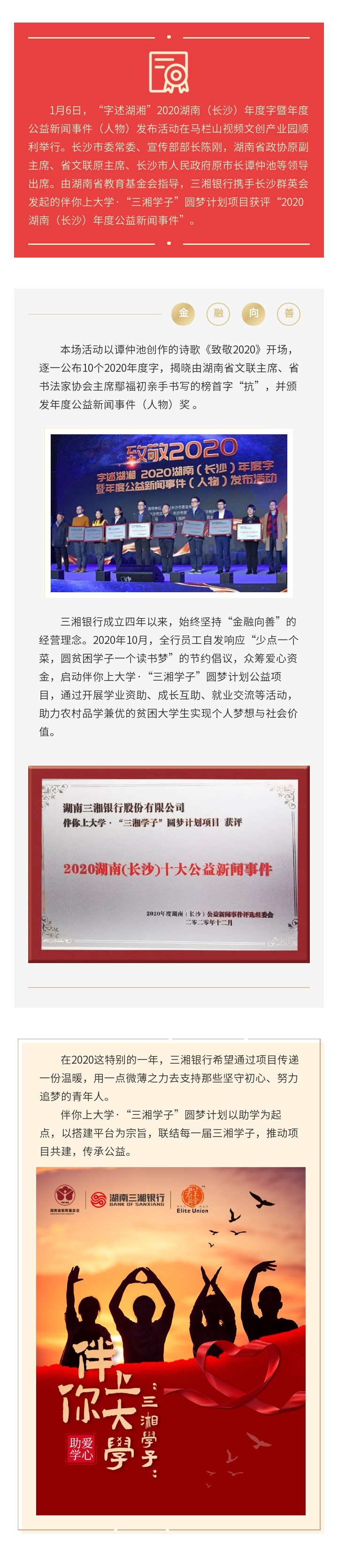 伴你上大学·“三湘学子”圆梦计划荣登2020湖南(长沙)年度公益新闻事件