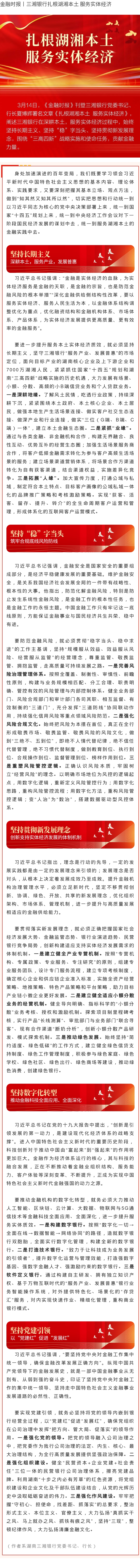 金融时报丨三湘银行扎根湖湘本土 服务实体经济
