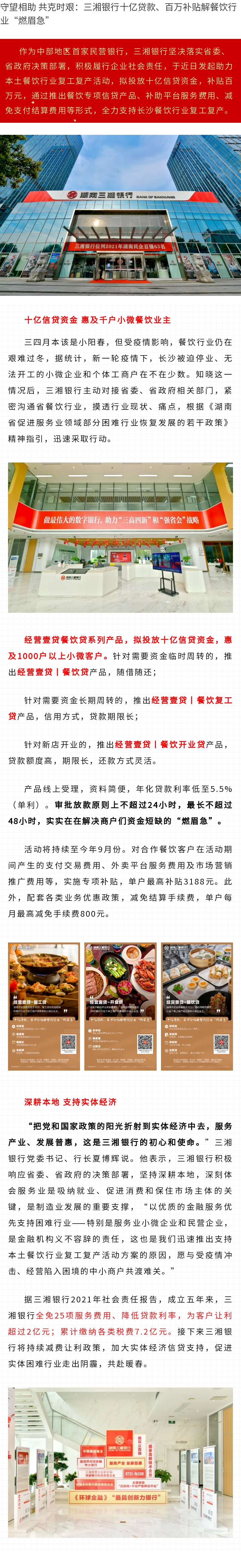 三湘银行十亿贷款、百万补贴支持餐饮行业复工复产