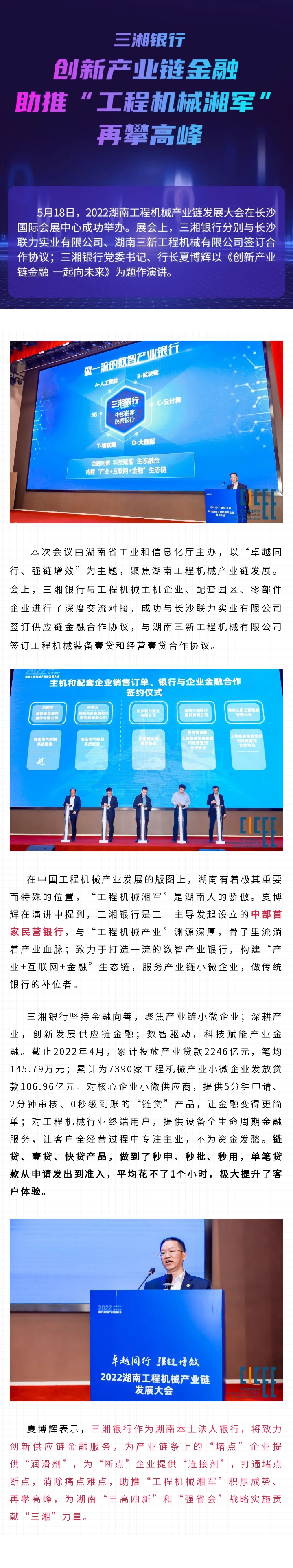三湘银行:创新产业链金融 助推“工程机械湘军”再攀高峰