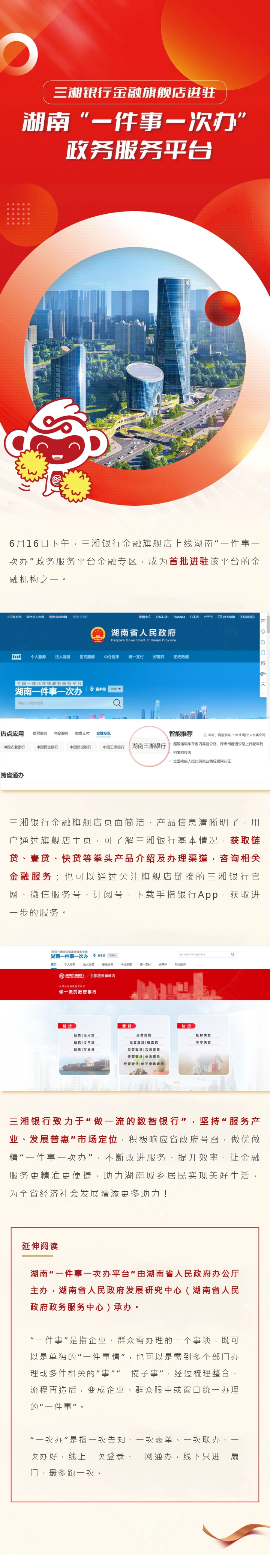 喜报丨三湘银行金融旗舰店进驻湖南“一件事一次办”政务服务平台