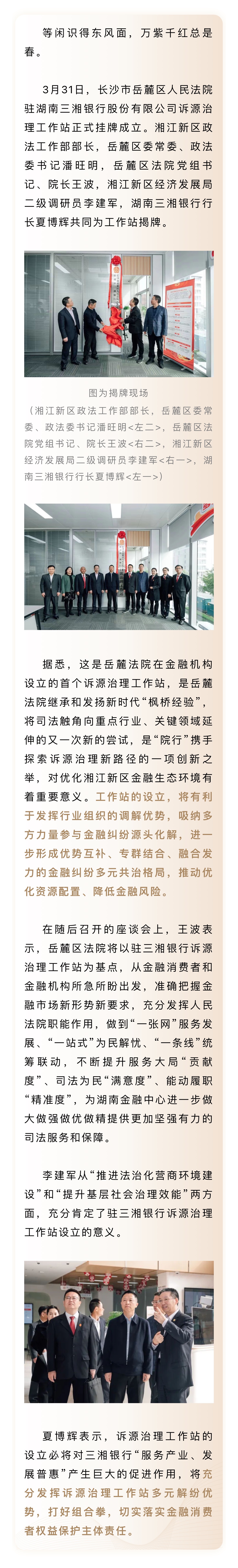 岳麓区人民法院驻三湘银行诉源治理工作站挂牌成立