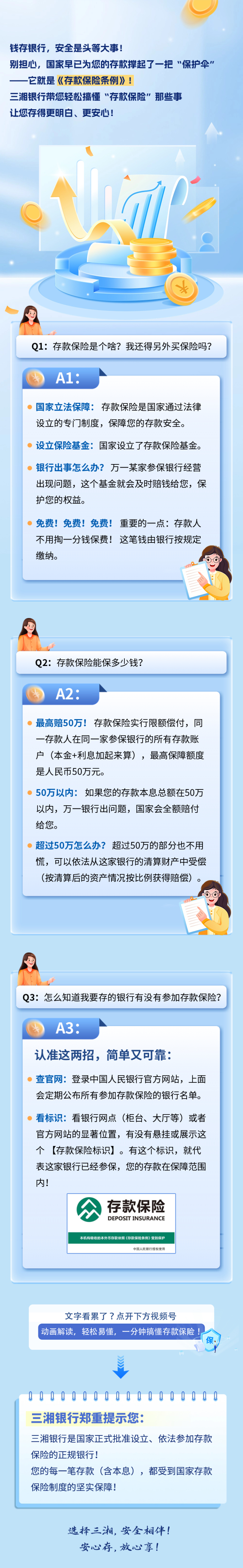存款有保险,权益有保障!三湘银行带您看懂存款保险,享无忧储蓄